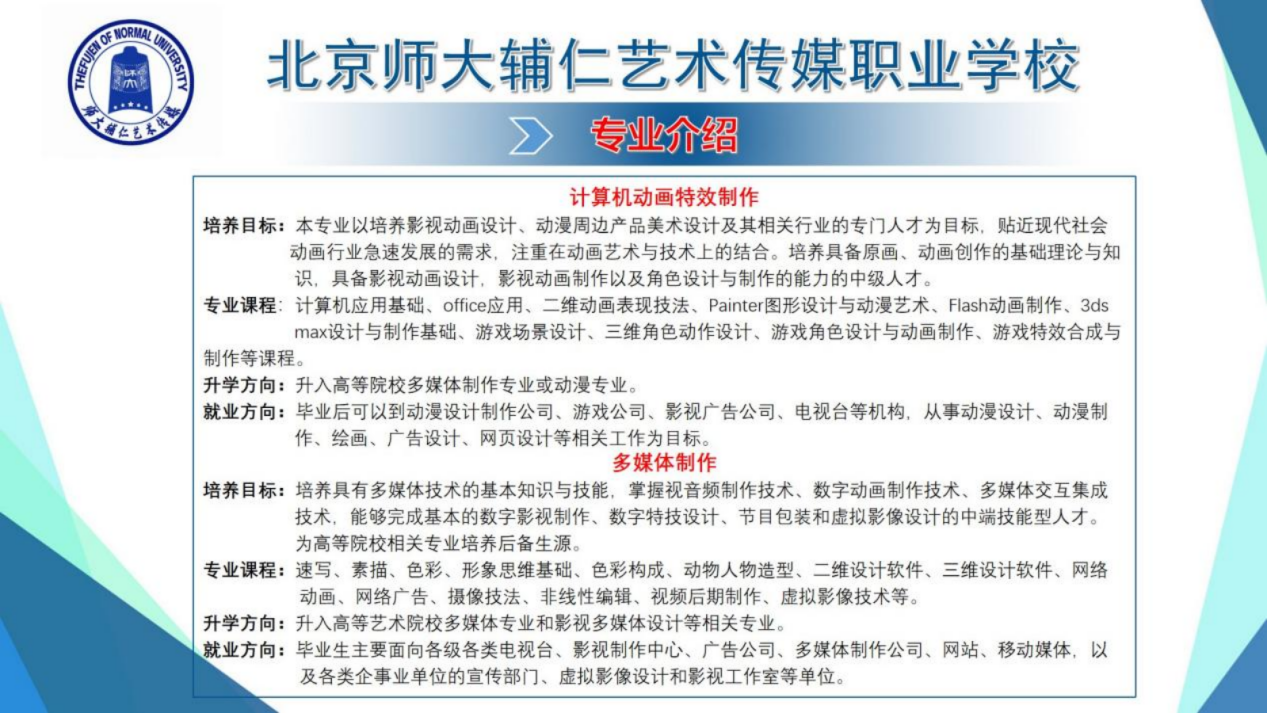 北京师大辅仁艺术传媒职业学校2024年升学及专业介绍